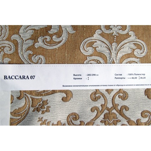 Купить ткань Baccara 07 в салонах штор Деколюкс можно на отрез, или с пошивом и навеской в Москве и Подмосковье, а так же с доставкой по России. Для этого свяжитесь, пожалуйста с нашими менеджерами по телефонам или по форме обратной связи.