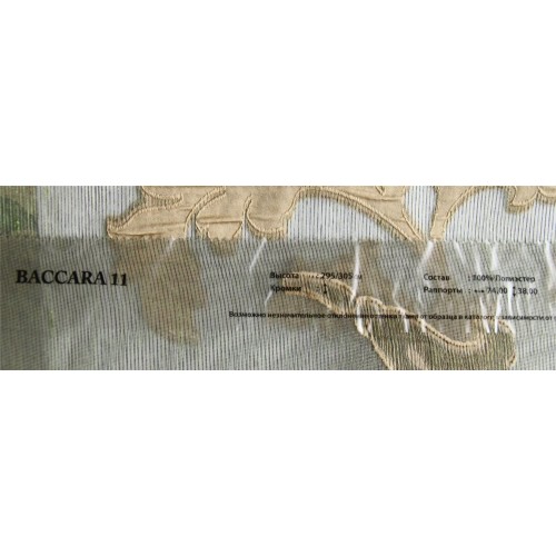 Купить тюль Baccara 11 в салонах штор Деколюкс можно на отрез, или с пошивом и навеской в Москве и Подмосковье, а так же с доставкой по России. Для этого свяжитесь, пожалуйста с нашими менеджерами по телефонам или по форме обратной связи. 10% СКИДКА на ткань и пошив при заказе тюля с пошивом от 6 м. в регионы России (за пределы Москвы и Московской Области) транспортной компанией СДЭК. Скидка действует до 10 июня 2021 г. и не суммируется с другими скидками и акциями!