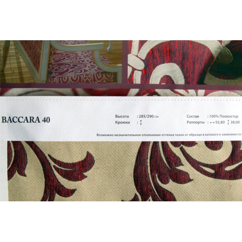 Купить ткань Baccara 40 в салонах штор Деколюкс можно на отрез, или с пошивом и навеской в Москве и Подмосковье, а так же с доставкой по России. Для этого свяжитесь, пожалуйста с нашими менеджерами по телефонам или по форме обратной связи.