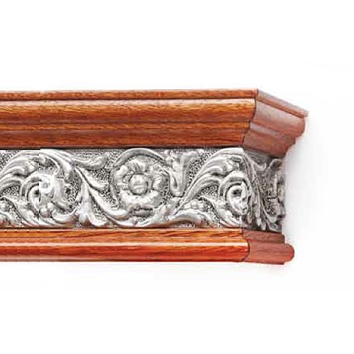 Багетные карнизы Испания серии Цивилизация изготовлены в Словении из ценных пород древесины, покрытой рисунками из полимерных материалов. Возможно исполнение угловых или эркерных форм и боковых элементов. Крепятся к потолку или к стене - с помощью кронштейнов, которые надо приобретать дополнительно в разделе "Комплектующие".