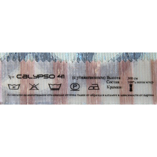 Купить тюль Calypso 41 в салонах штор Деколюкс можно на отрез, или с пошивом и навеской в Москве и Подмосковье, а так же с доставкой по России. Для этого свяжитесь, пожалуйста с нашими менеджерами по телефонам или по форме обратной связи. 10% СКИДКА на ткань и пошив при заказе тюля с пошивом от 6 м. в регионы России (за пределы Москвы и Московской Области) транспортной компанией СДЭК. Скидка действует до 10 июня 2021 г. и не суммируется с другими скидками и акциями!