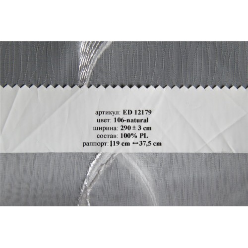 Купить тюль ED 12179 106 natural в салонах штор Деколюкс можно на отрез, или с пошивом и навеской в Москве и Подмосковье, а так же с доставкой по России. Для этого свяжитесь, пожалуйста с нашими менеджерами по телефонам или по форме обратной связи. 10% СКИДКА на ткань и пошив при заказе тюля с пошивом от 6 м. в регионы России (за пределы Москвы и Московской Области) транспортной компанией СДЭК. Скидка действует до 10 июня 2021 г. и не суммируется с другими скидками и акциями!