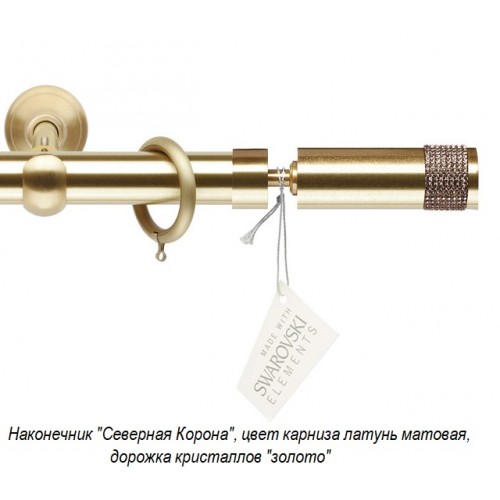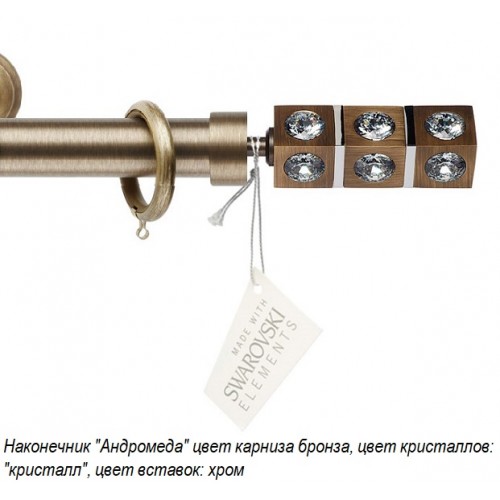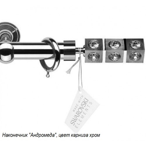 Итальянские карнизы Crystallo диаметром 30мм. - эксклюзивная итальянская коллекция декоративных карнизов, изготовленных из сплава латуни. Наконечники коллекции инкрустированы кристаллами Сваровски (Made with Crystallized™ Swarovski Elements), у наконечников предусмотрен подбор цвета дорожек кристаллов, вставок и самих кристаллов (наконечники "Андромеда" и "Орион"). Все комплектующие покрываются специальным защитным лаком, предохраняющим от повреждений и дефектов, и сохраняющим товарный вид на весь срок эксплуатации.