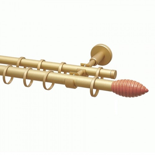 Двухрядный карниз серии "Топ-Декор" фабрики УЮТ с 2-мя наконечниками из ценных пород дерева. Диаметр первой трубы (для штор) 20 мм., второй (для тюля) - 16 мм. Необходимо выбрать: длину труб, цвет изделий из металла, модель и цвет деревянных наконечников и количество стеновых кронштейнов.