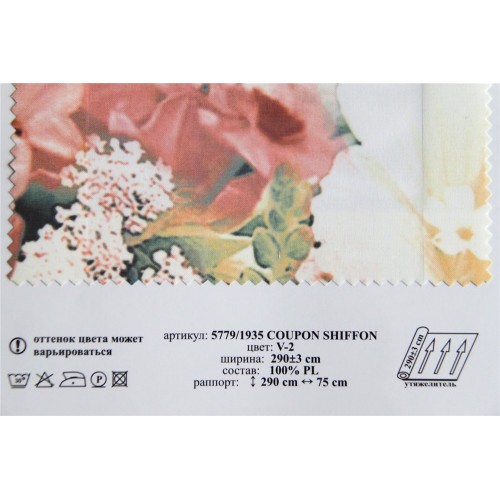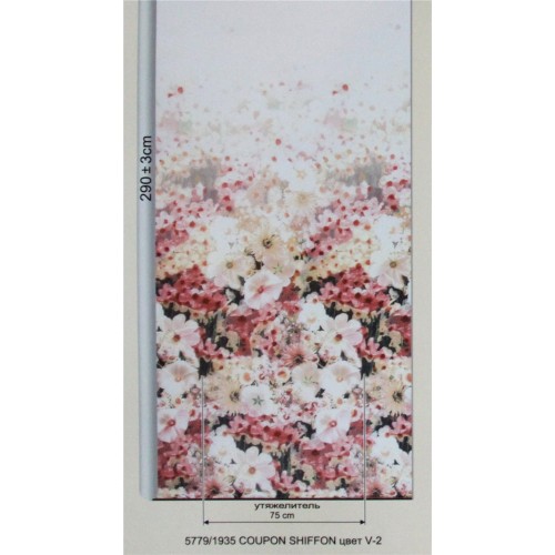 Купить тюль Wonderful 5779/1935 Coupon Shiffon v 2 в салонах штор Деколюкс можно на отрез, или с пошивом и навеской в Москве и Подмосковье, а так же с доставкой по России. Для этого свяжитесь, пожалуйста с нашими менеджерами по телефонам или по форме обратной связи. 10% СКИДКА на ткань и пошив при заказе тюля с пошивом от 6 м. в регионы России (за пределы Москвы и Московской Области) транспортной компанией СДЭК. Скидка действует до 10 июня 2021 г. и не суммируется с другими скидками и акциями!